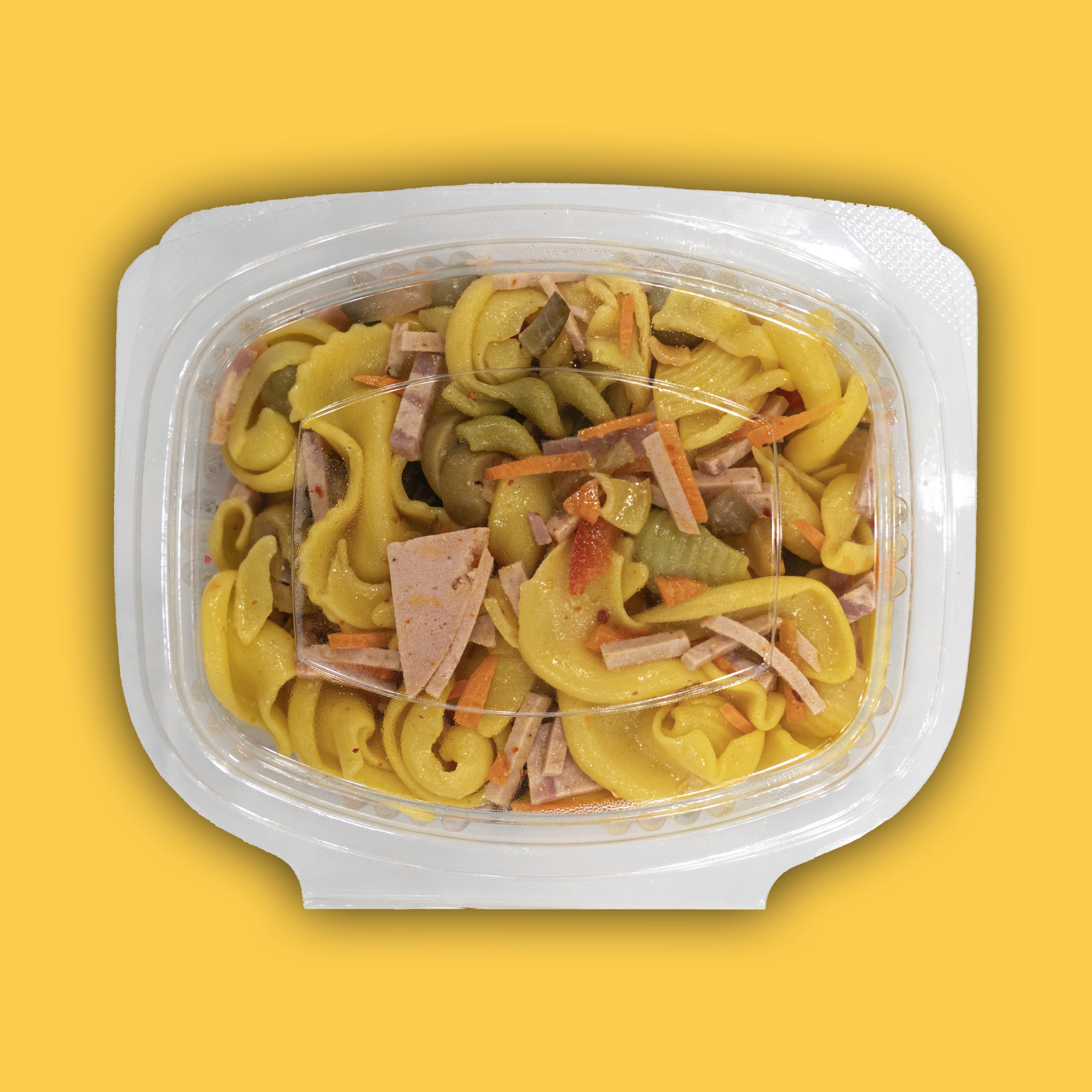 ماکارونی ، ژامبون گوشت ، هویج ، فلفل دلمه تی ، نخود فرنگی، روغن زیتون