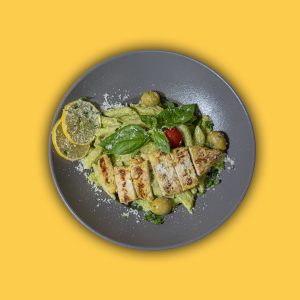 پنه ، مرغ و گوشت مرینت شده، پنیر پارمسان ، پنیر میکس شده ، قارچ و گوجه گیلاسی