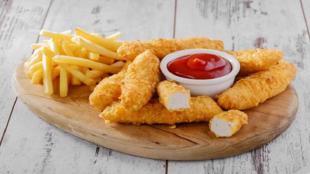ران مرغ 3 تیکه ، سیب زمینی سرخ کرده ، سالاد کلم ، نان لقمه ، سس