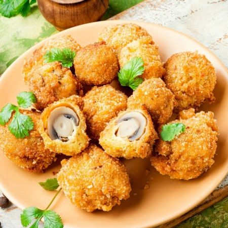 سیب زمین سرخ شده ، قارچ ، پنیر ، زیتون ، فلفل دلمه ای