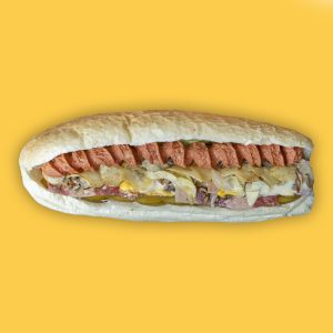 سس مخصوص ، هات داگ 90% ، بیکن ، قارچ و پنیر ، گوجه ، کاهو ، خیارشور