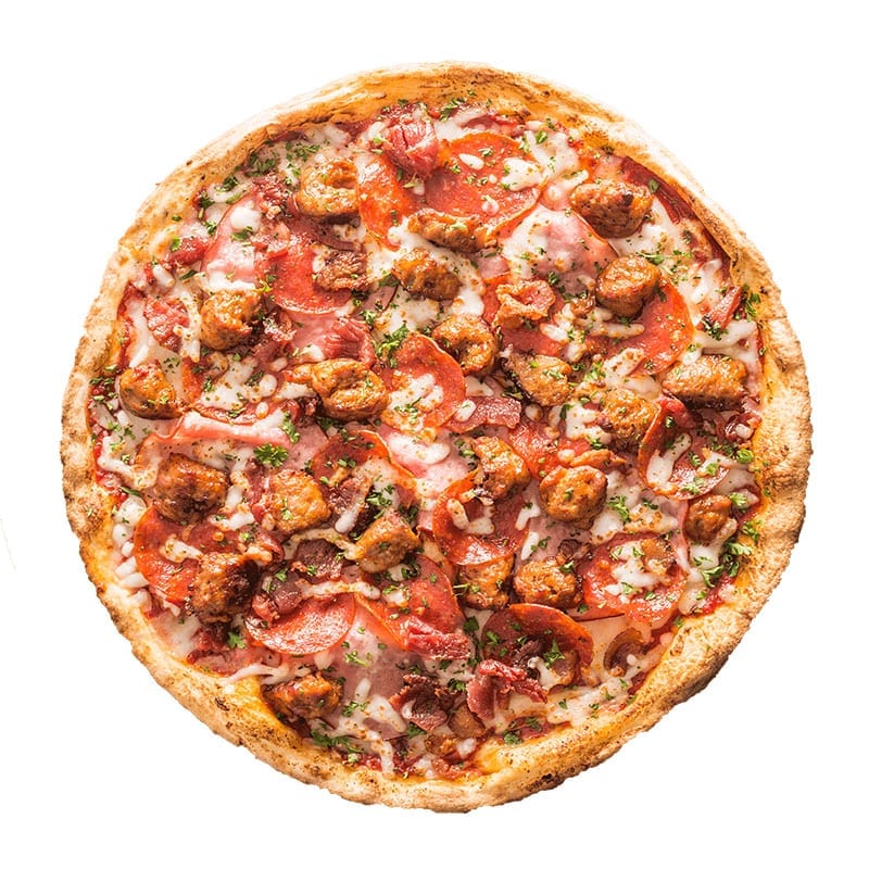 - عناصر: سس گوجه فرنگی ، موزارلا ، پارمسان ، بیکن ، ژامبون ، ریحان ، روغن زیتون فوق العاده با کره